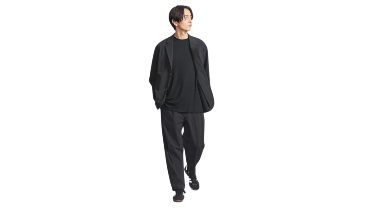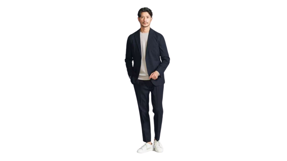 従来のウールのスーツにTシャツやスニーカーを合わせるのは相性が悪いんです。
