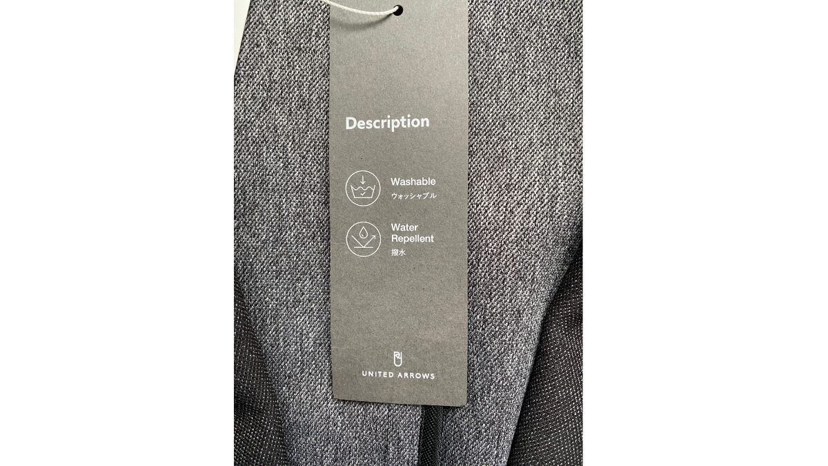 そして、撥水加工もしてあり、さらに防シワ加工までしてあるようです。